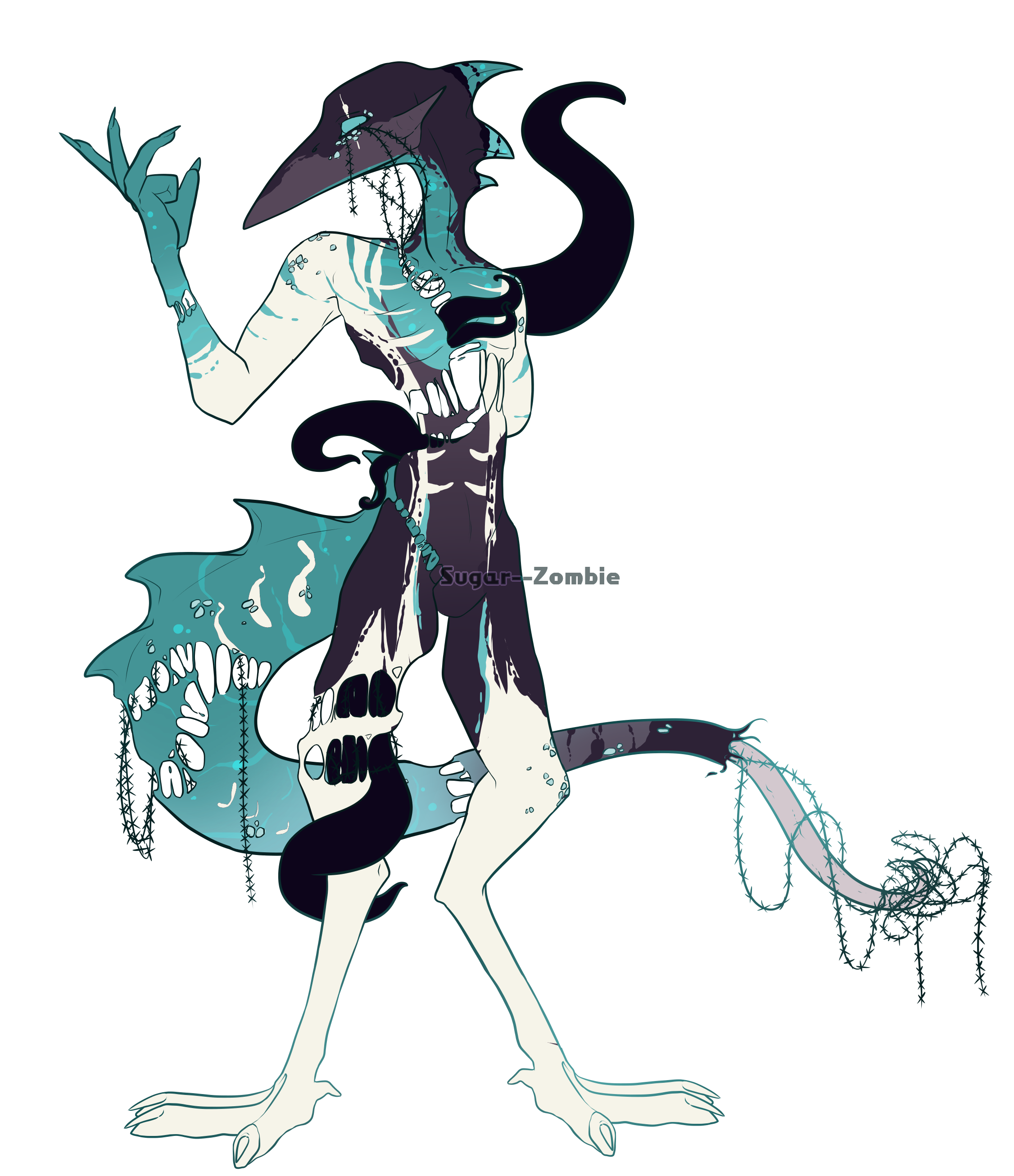 Tame Reforming/breaking holes that are constantly healing and breaking. Her limbs are never completely severed from her body and are always attached (even if by just a small thread) Tame Barbed wire internally. Part of body