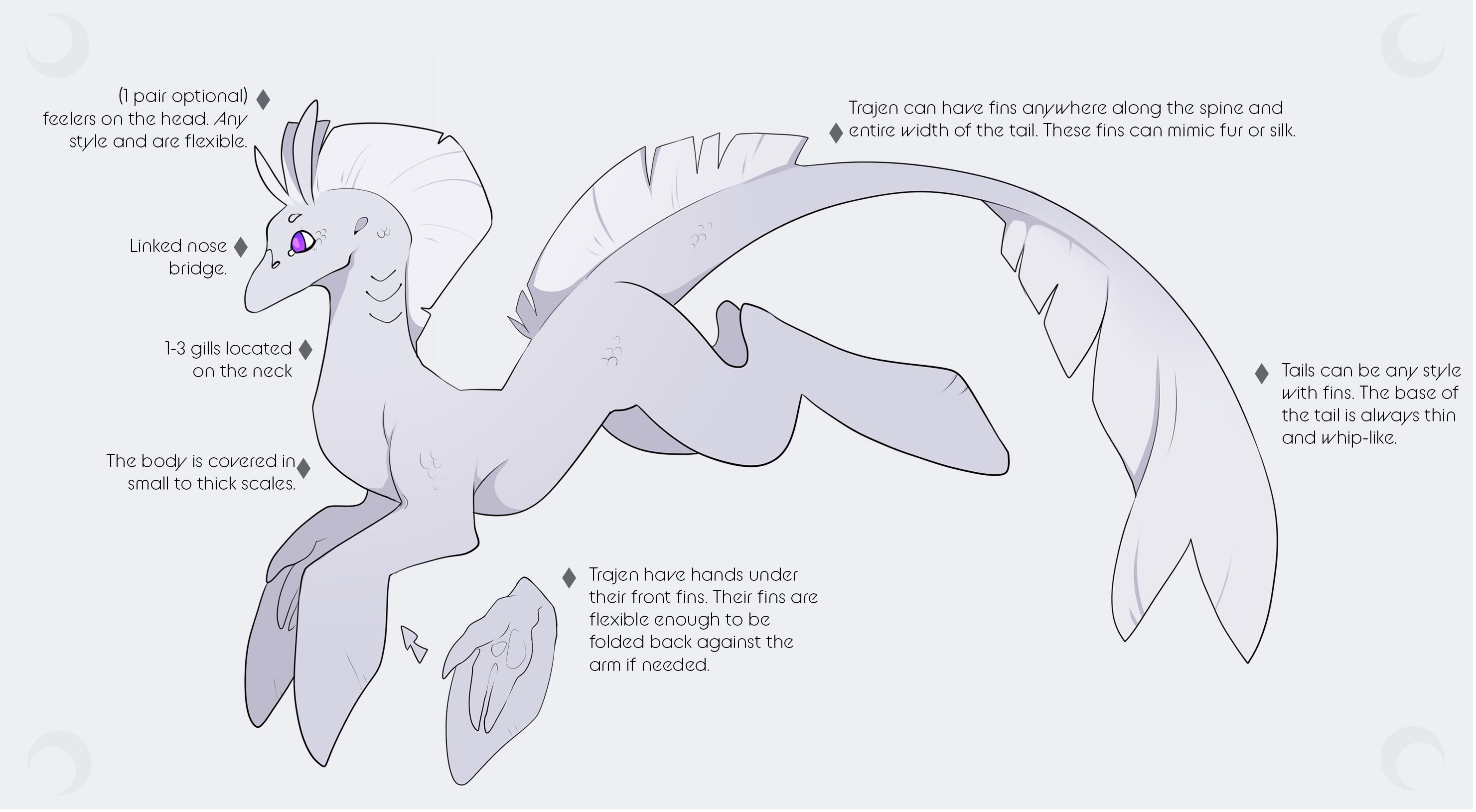 These forms must share identical coats as their normal forms, and the same traits and placement where possible (excluding body modifiers like Naga anatomy, mermaid tail etc).